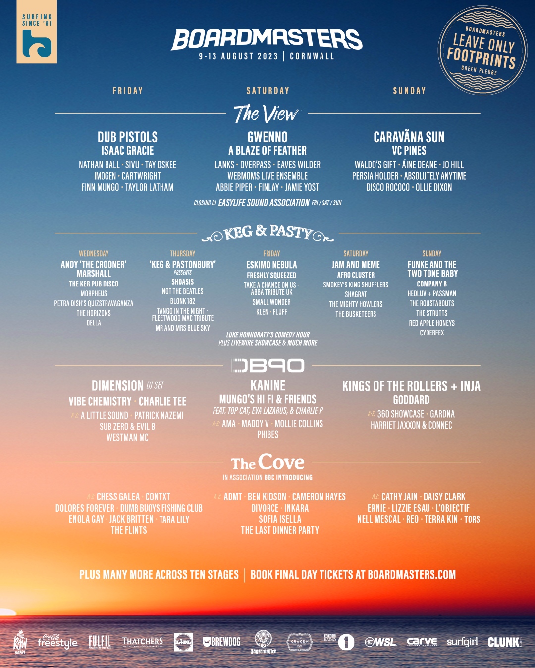 NEWS JUST IN: There are just 36 DAYS to go and your summer is looking glooorious 🎉 Surf, sounds & soul awaits with your headliners Lorde, Liam Gallagher and Florence + The Machine, plus special guest Ben Howard, Little Simz, Dermot Kennedy, The Vaccines, Raye, Four Tet, Shygirl & 100’s more across ten stages! 👀 PLUS we’ve added a couple of new additions – can you spot them? Head to Stories to find out who! 👀 Did you hear? All Weekend Camping and Saturday Day tickets are SOLD OUT – with last remaining Friday & Sunday day tickets on their FINAL TIER… See you at the beach… Boardmasters HQ x #Boardmasters2023 #SeeYouAtTheBeach #LeaveOnlyFootprints