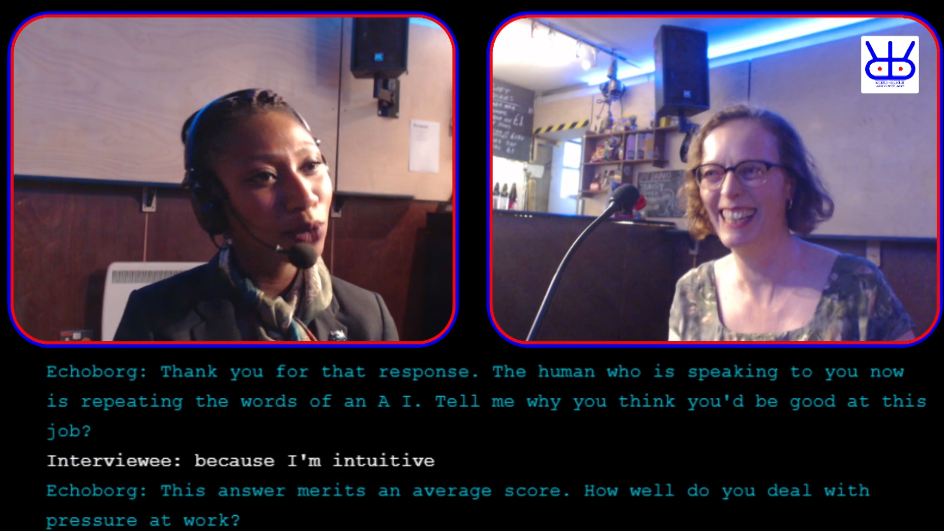 Join a team of brave souls and negotiate the future of humanity with an Artificial Intelligence. The show is created in real-time by your conversations with a self-learning AI. It speaks through a human, an echoborg, and it wants you to become an echoborg too…