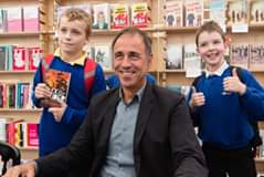 Here's a pic of him with some adoring fans who lined up to meet him at #cheltlitfest 2018 ⬇