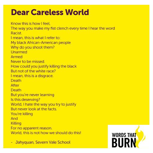 📝 We mark #WorldPoetryDay with this piece from Severn Vale School student Jahyquan titled Dear Careless World.