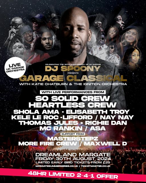 🚨48 HOURS TO GRAB YOUR 2 FOR 1 DEAL!!!🚨 DJ Spoony will be bringing his Garage Classical Orchestra to Dreamland this summer! It’s a HUGE lineup and you don’t want to miss it 🔥 30th August | Dreamland, Margate https://www.ticketweb.uk/event/dj-spoony-feat-so-solid-dreamland-margate-tickets/13676748
