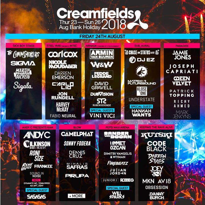 #Creamfields2018 – The worlds biggest electronic line up 🔥