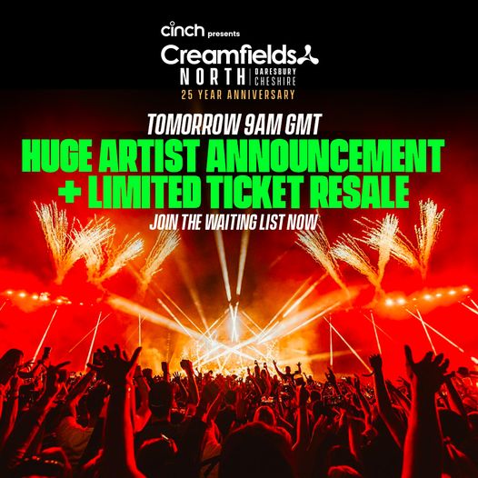 Incoming! Huge phase 1 artist announcement + limited failed deposit payments resale tickets coming tomorrow at 9am GMT #cinchxCreamfields #CreamfieldsNorth