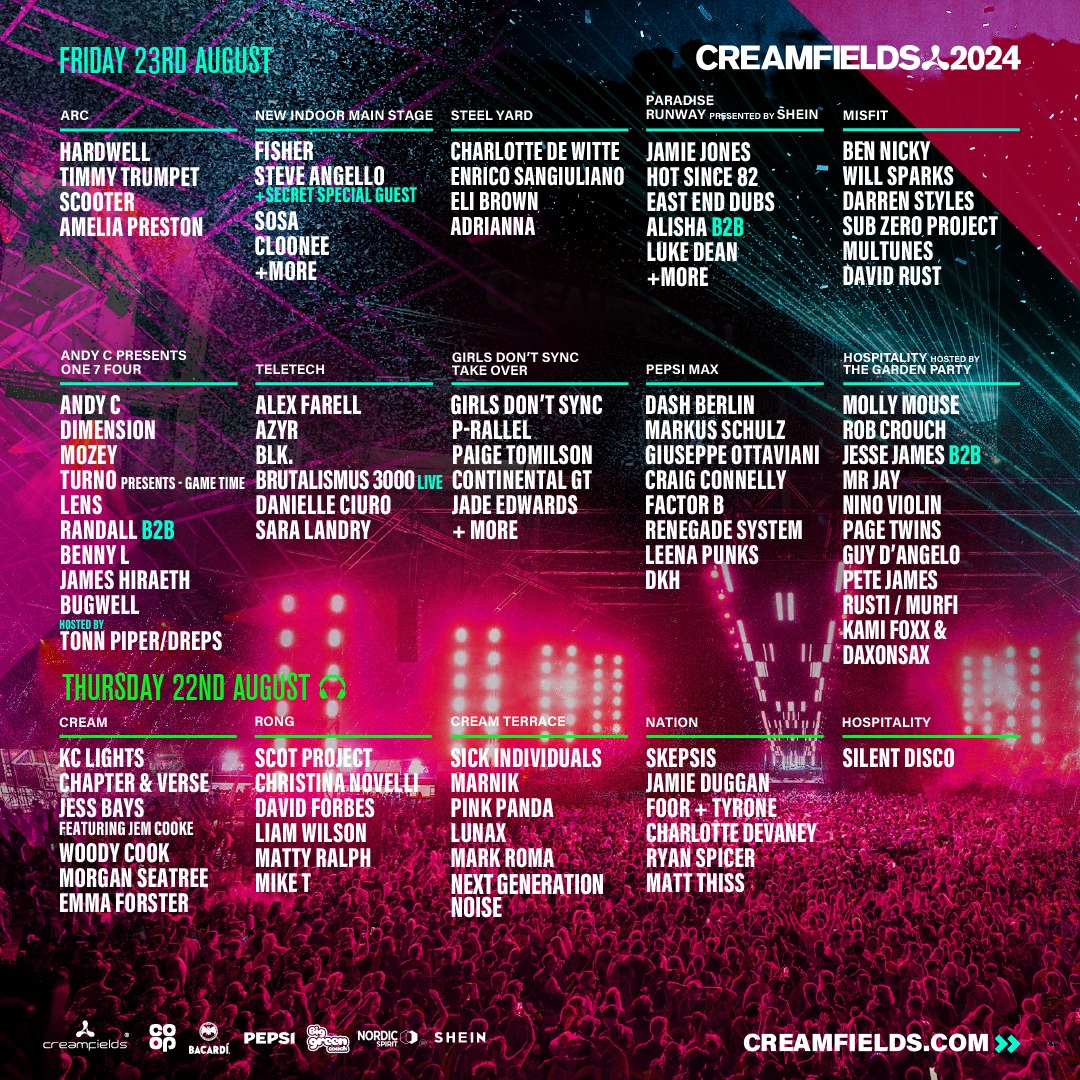 JUST ANNOUNCED! Creamfields 2024 lineup unleashed 🔥LIMITED re-sale tickets on sale tomorrow 9am (GMT), if you’ve missed out on tickets, sign up at Creamfields.com/signup ! Celebrate in style and win our HUGE competition giveaway for you and your +1 🎉 – The trip of a lifetime to Creamfields Chile 2024, including flights, accommodation & £1,000 spending money 🇨🇱✈️