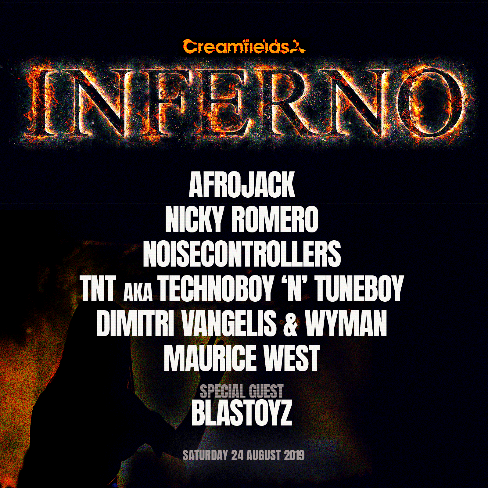 Just announced! New to #Creamfields2019 we give you INFERNO with Afrojack, Nicky Romero, Noisecontroller