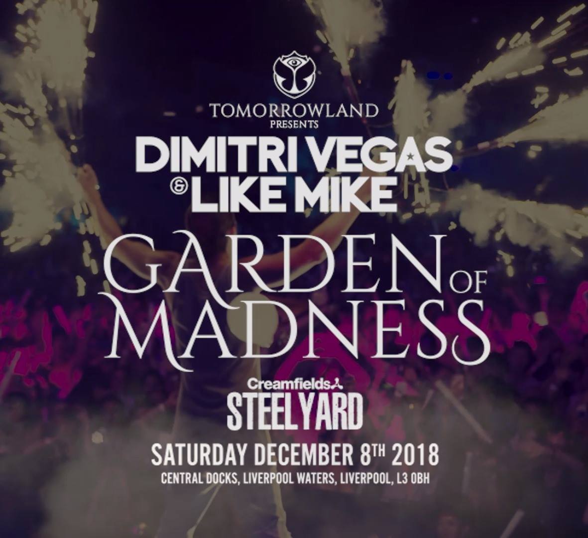 Tickets on sale now – https://www.skiddle.com/whats-on/Liverpool/Central-Docks-Liverpool-Waters/Creamfields-Steel-Yard—Tomorrow-Land-Presents-Garden-of-madness/13308129/?ticketpw=steelyardpre#eventticketsbox
