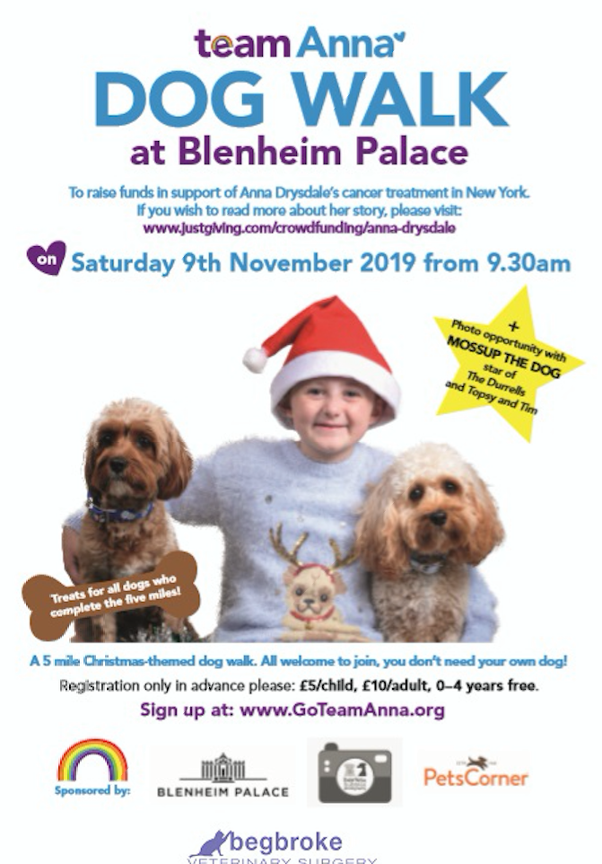 Roxy, our very own Cropredy Newshound, is taking part in a sponsored walk at Blenheim Palace with her Dad on Sat 9 November in aid of this most worthy of causes. You are more than welcome to sign up and join us. If not, it would be great if you could spare a little time to go to Anna's website here and see what it's all about – http://goteamanna.org – and please, please, share this post.