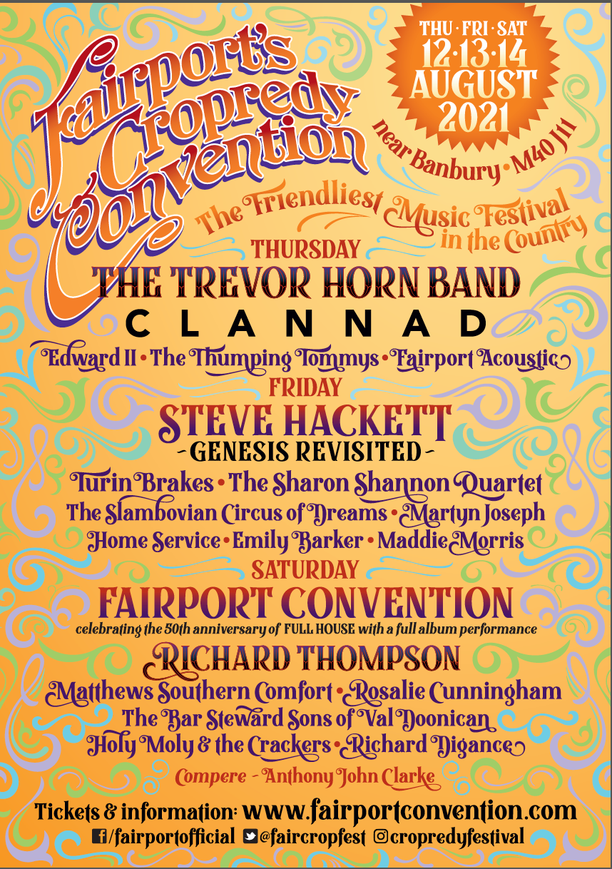 Tickets for Cropredy 2021 are back on sale! If you have already purchased tickets for 2020, these will be valid for 2021. They are barcoded so you don’t need to do anything. www.fairportcon
