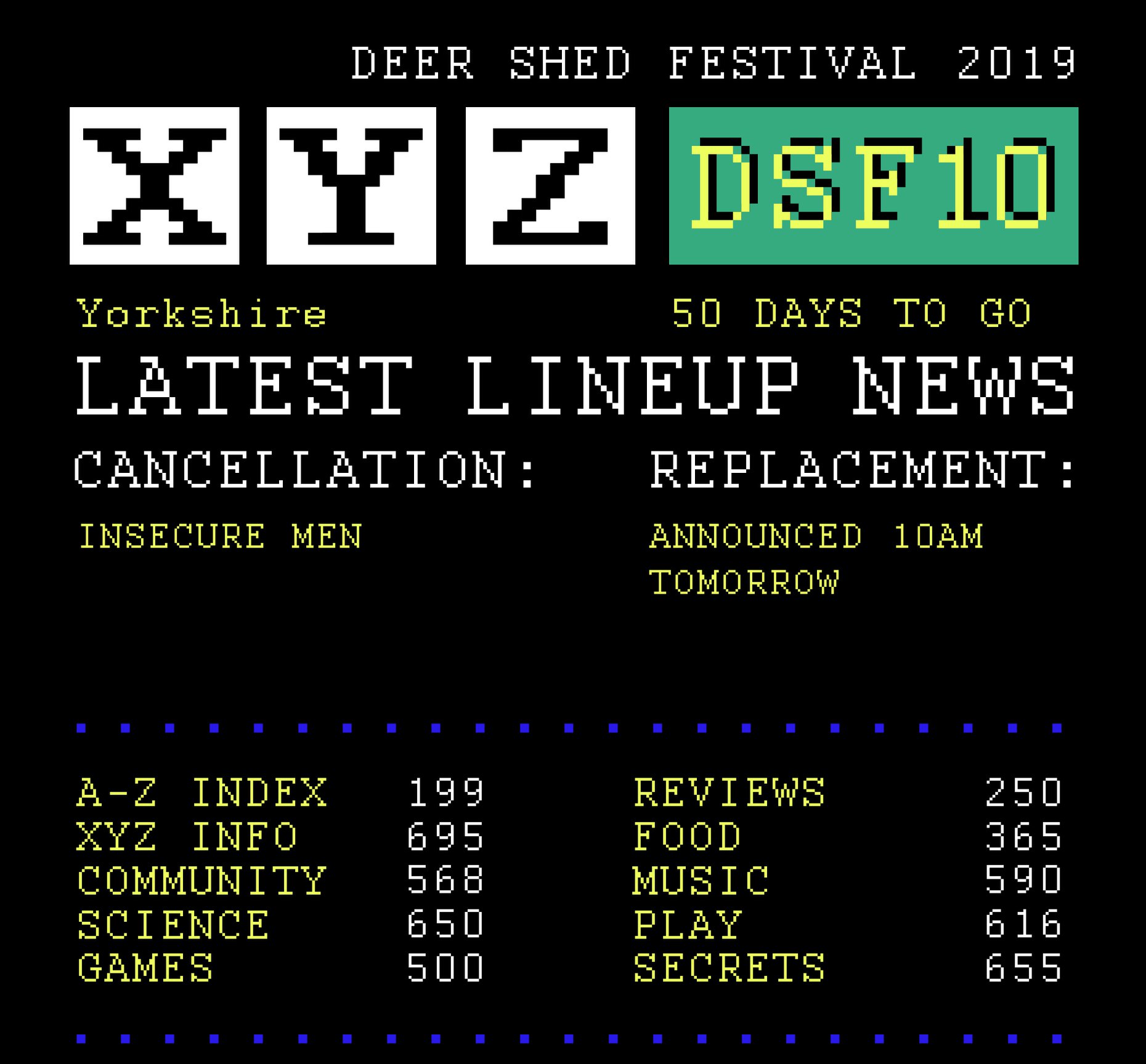 Sadly we must announce the cancellation of Insecure Men’s set at #DeerShed10 due to their commitments with other projects.