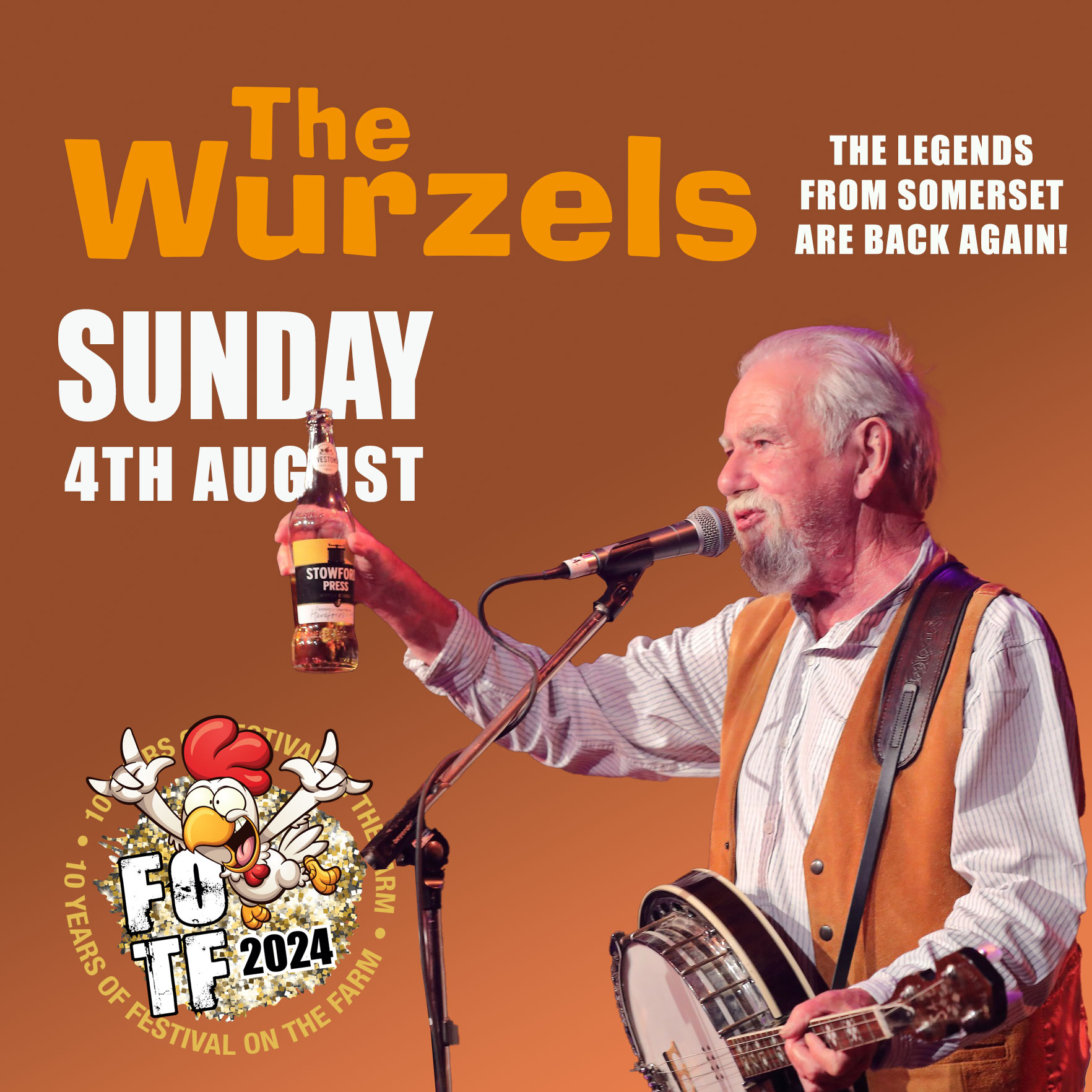 The legendary The Wurzels are back again on the farm (for more cider!) as our headline act on Sunday 4th August.