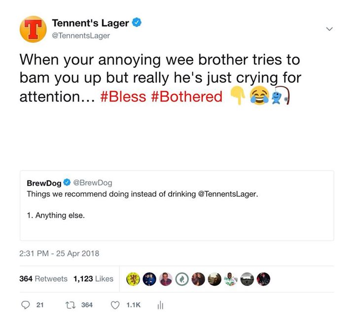 BrewDog getting absolute pelters on Twitter for taking on the big T 🔴 Tennent’s Lager 🔴