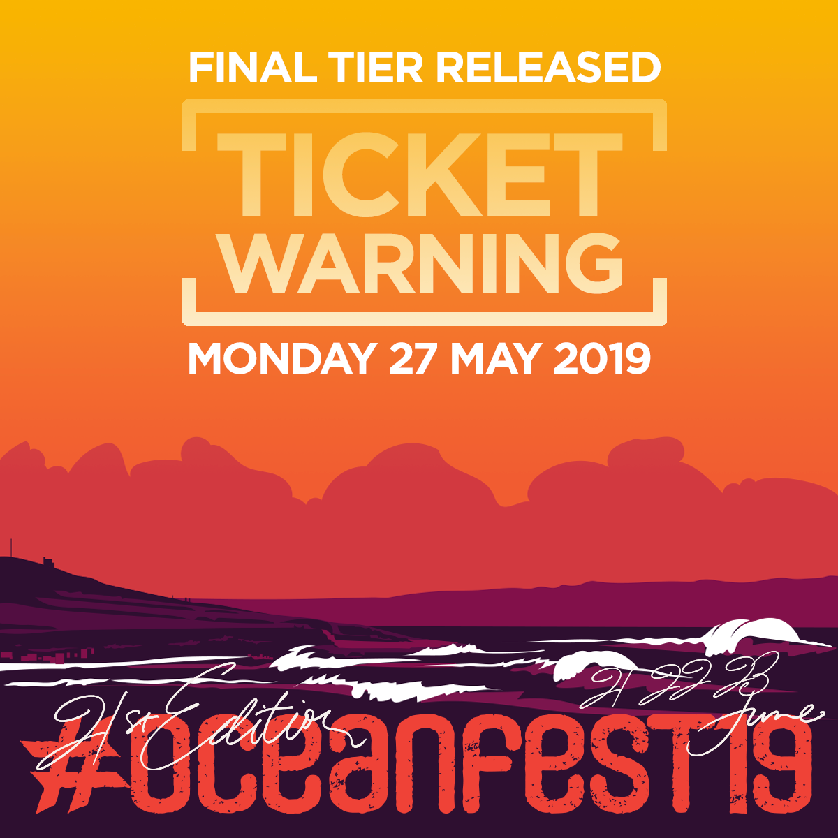🚨🎟️TICKET WARNING! 🎟️🚨 The final tier of #oceanfest19 tickets will be released on Monday 27th May – http://goldcoastoceanfest.co.uk/boxoffice/#missitmissout #surfandmusic #croyde #midsummer