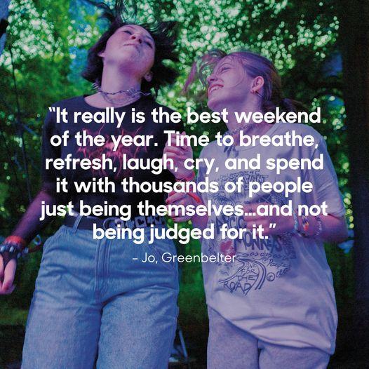 “It really is the best weekend of the year. Time to breathe, refresh, laugh, cry, and spend it with thousands of people just being themselves…and not being judged for it.” Jo, Greenbelter