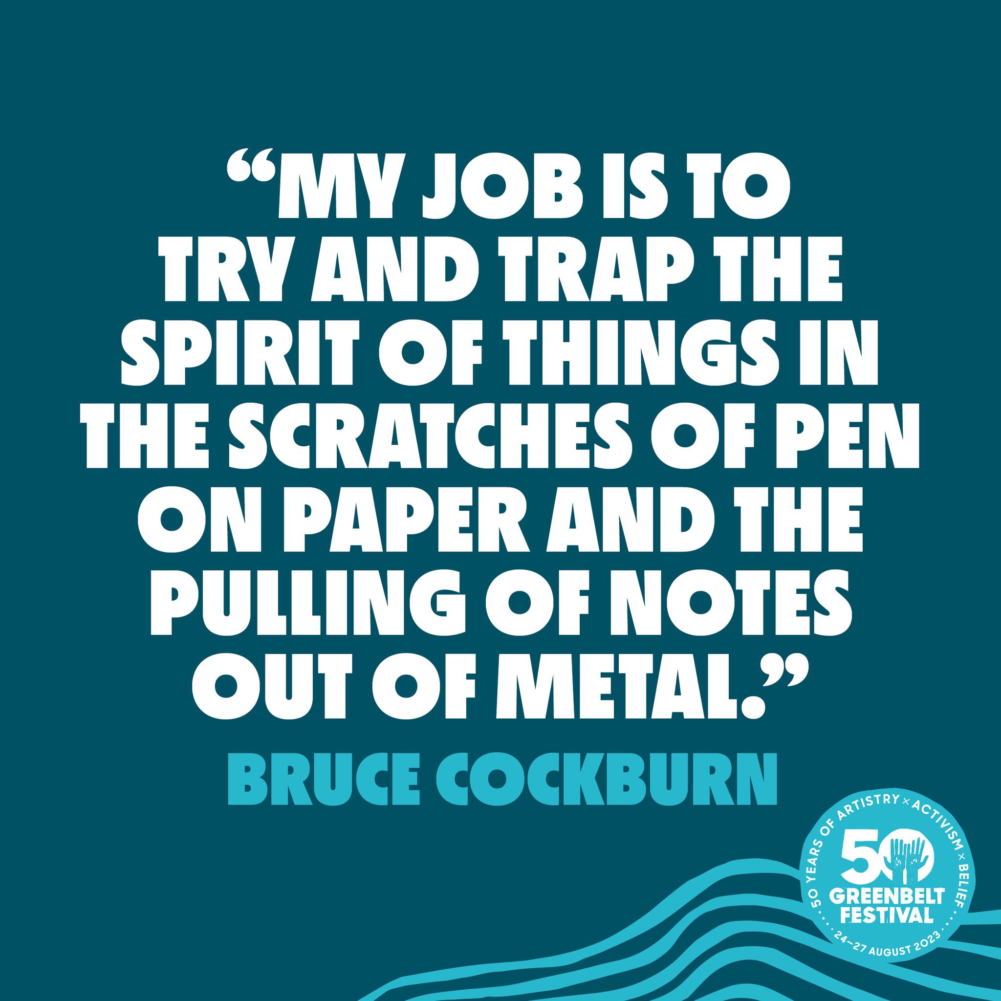 50 years of moving music. See Bruce Cockburn at Greenbelt Festival 2023.