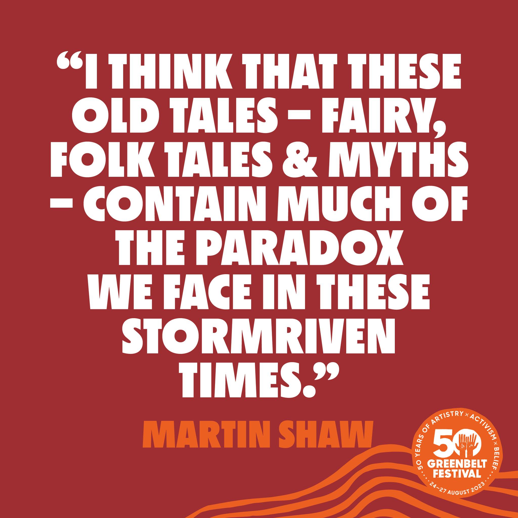 distinct author, are not wiggled from the penned agenda of one brain-boggled individual, but have passed through the breath of a countless number of oral storytellers.” – Martin Shaw50 years of story- and truth-yelling. See writer, mythologist and oral storyteller Martin Shaw at Greenbelt Festival 2023.