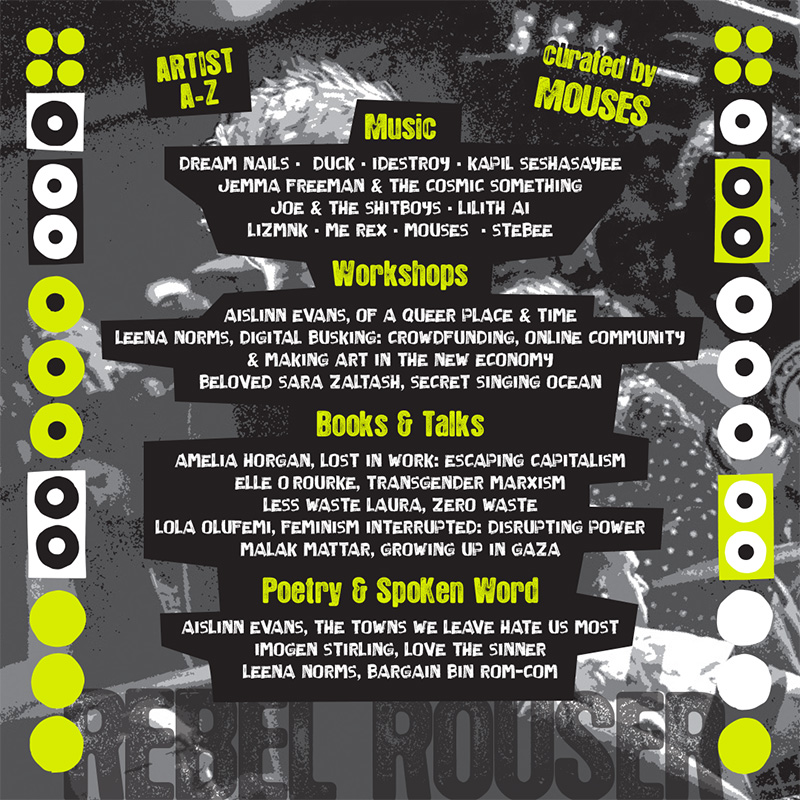 We’ve curated the Rebel Rouser with the band Mouses. After they performed at Greenbelt back in 2019, we realised that Mouses were kindred spirits. They’ve made a little video talking about what to expect at your new favourite venue: https://youtu.be/UuuN60fIApw