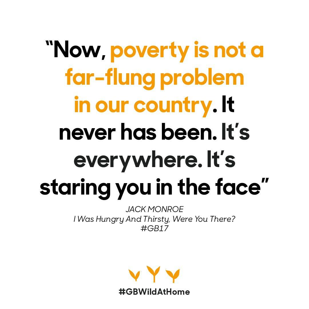 Someone who knows only too well the difference that a local foodbank can make at a time of crisis, is past Greenbelt speaker and cook Jack Monroe. We’ve loved having Jack to the festival for the past three years. Here’s their unforgettable Glade mainstage talk the first time they came – I was Hungry and Thirsty, Were You There? – which ended in tears and hugs in the days before social distancing.