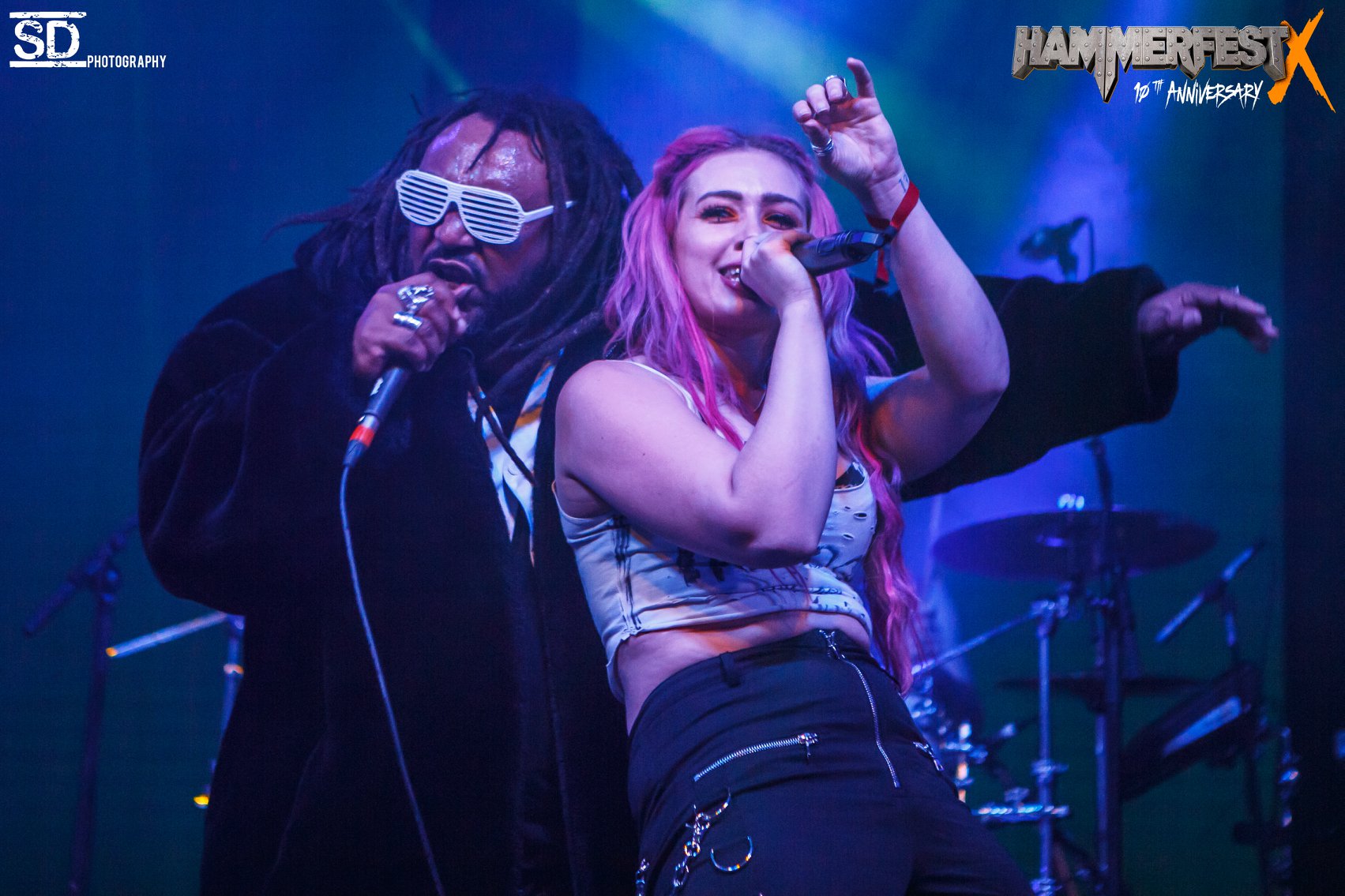 Benji Webbe and Sever on stage togehter during the Sumo cyco set @ Hammerfest X