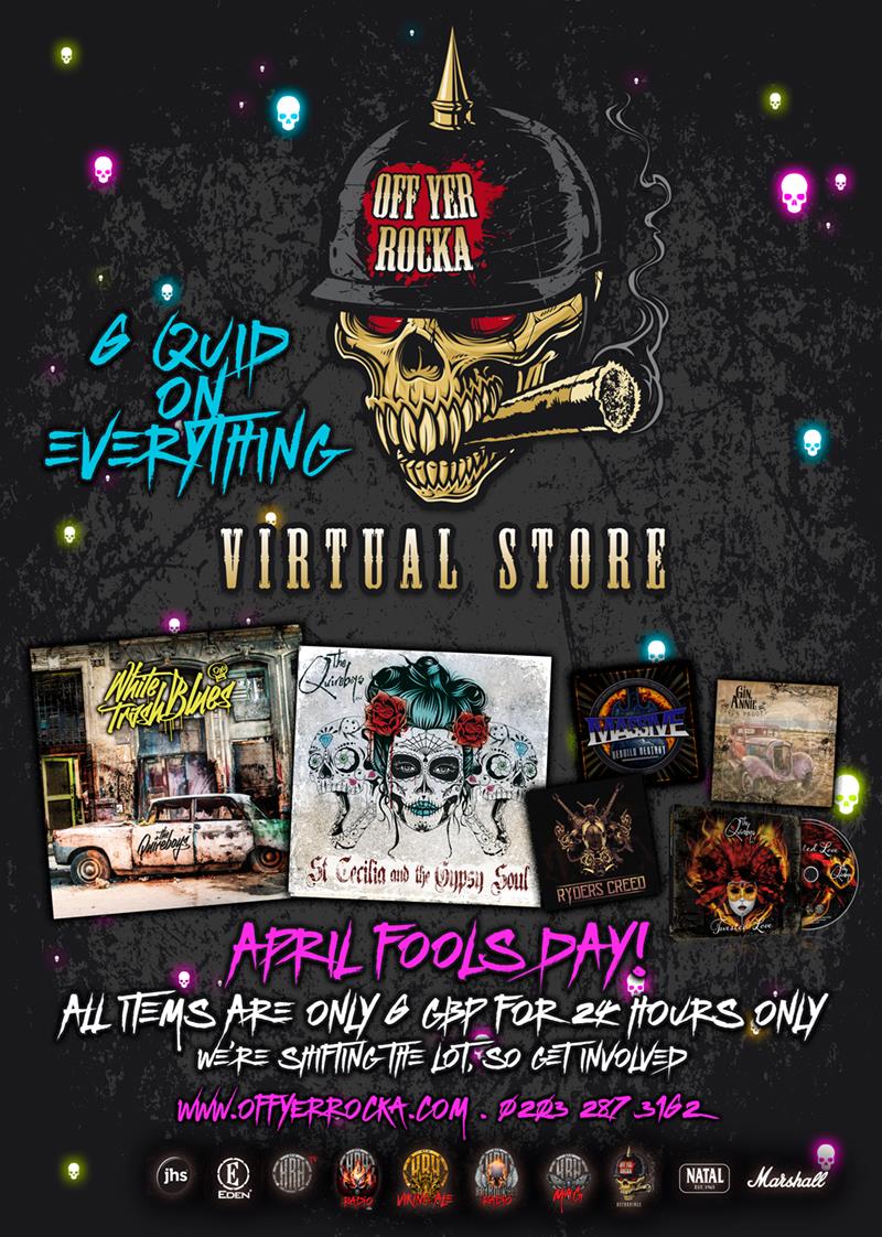 Today is a special day, maybe were the fools for doing it, or maybe you are for not jumping on it quick enough before it runs out but either way, all Merch, DVD’s, Vinyl n CD’s* are only 6 quid in the Off Yer Rocka Virtual Store for April Fools Day!