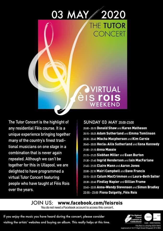 Fèis Rois weekend of workshops and concerts all from the comfort of your home. Check it out.