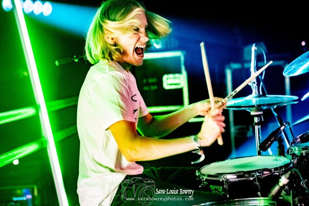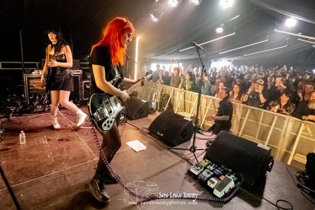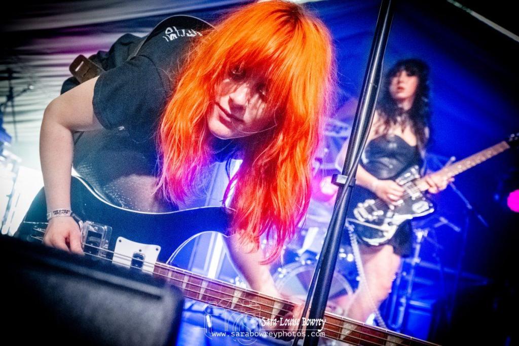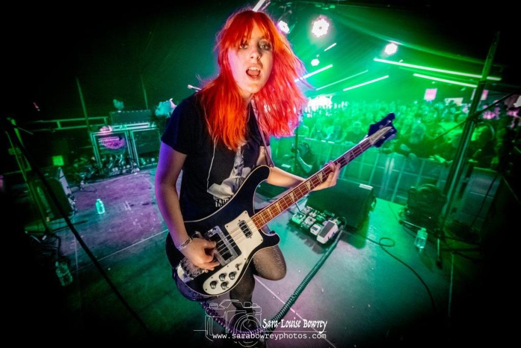 There’s a very good reason we put HotWax on our ‘must see’ TGE23 list…and also why we have been championing them as a band to watch for the last year or so. Quite simple they ooze with all the elements that make a great live band…not least that they have a great catalogue of songs already under their belts, so, unlike many new young acts, they can play a 45 minute set with a tonne of killer and very little filler. Today on the TGE beach stage they only had a mere 30 minutes to impress the packed-out tent, but that wasn’t hard to do, because being the force of nature they are it’s always just a matter of minutes before they have any crowd eating out of the palms of their hands. We love the fact that this isn’t just a raw, shouty, pop-punk trio. This is a shouty pop-punk trio with genuine musical talent that holds their music together in a far more refined way than you might at first realise.