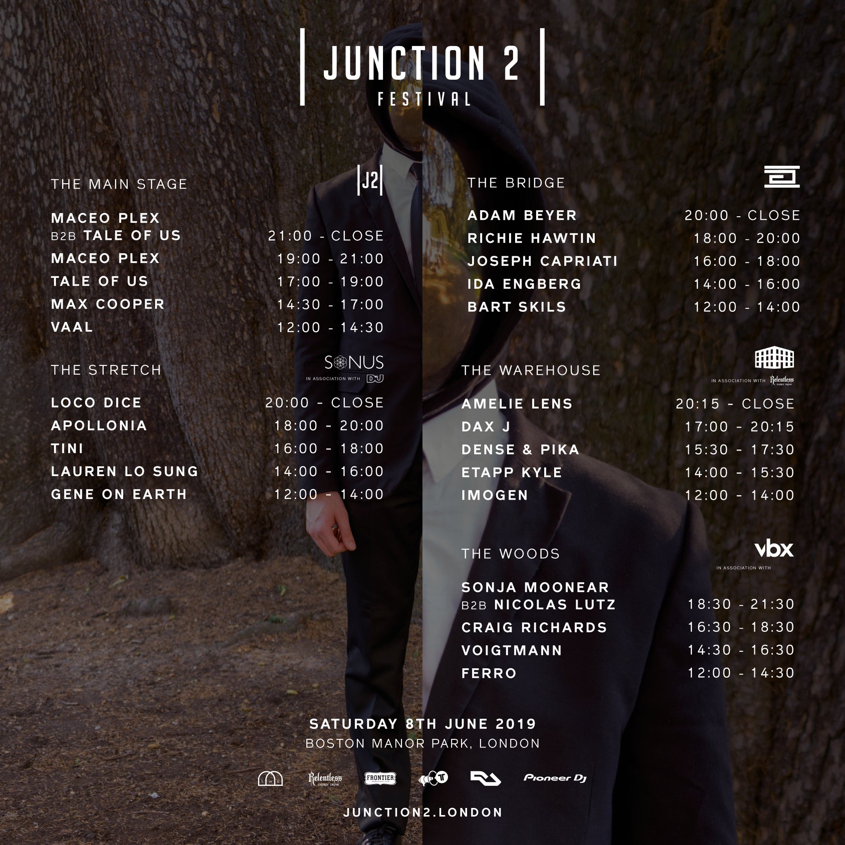 To track the artists and create your own timetable, download the Junction 2 Woov app – https://