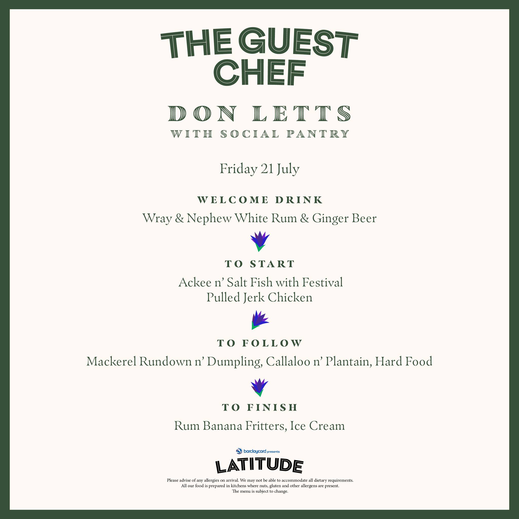 Our Guest Chefs have prepared four delectable menus for you to devour at Latitude 🍴 Emma Freud and Richard Curtis present a love letter to Suffolk; Don Letts dives deep into his Jamaican roots; Marcus Brigstocke and Rachel Parris combine their loves of musical theatre and food; and Sophie Ellis-Bextor and Richard Jones invite you to their kitchen disco as they dish up recipes from their cookbook Love. Food. Family. We’ve added more tickets to Thursday’s meal with Emma Freud and Richard Curtis, with limited tickets remaining for Friday, Saturday and Sunday! Don’t miss out on a seat at the table – book your meal now 👉 tinyurl.com/yrhz5fpe #BarclaycardxLatitude