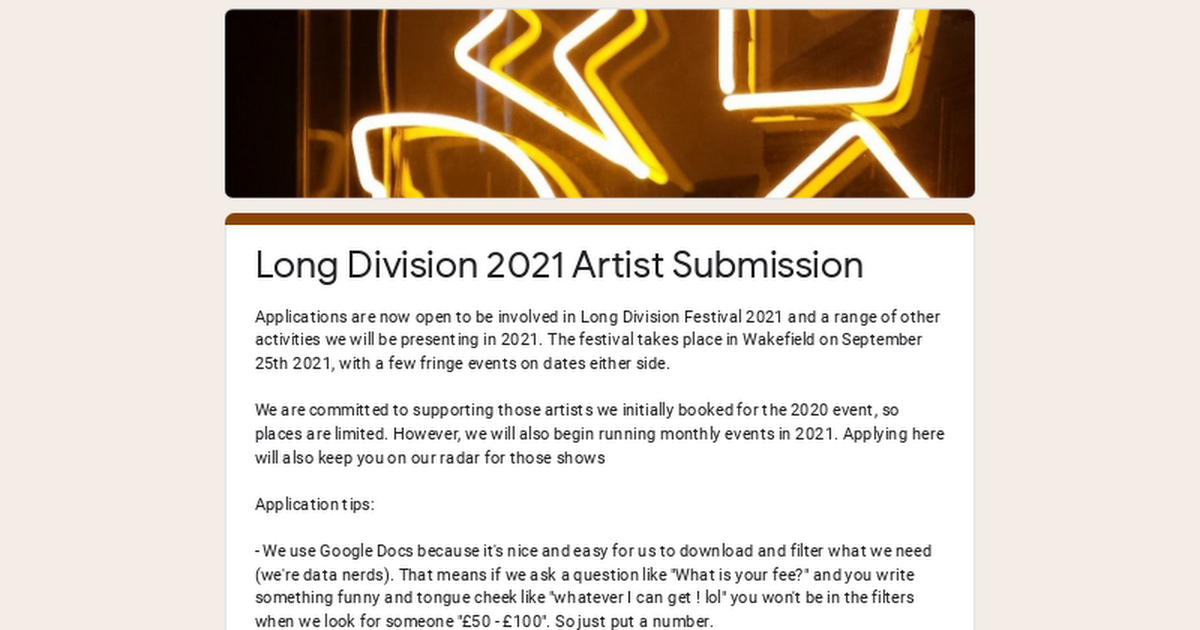 Long Division festival news : Long Division 2021 Artist Submission