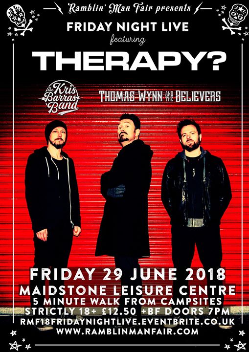 [ad_1] #FridayNightRamble Tonight for your gigging pleasure Ramblers we have Therapy? that man Kris Barras Band & THOMAS WYNN & THE BELIEVERS at the Maidstone Leisure Centre – It all kicks off at 7pm #RMFair2018
