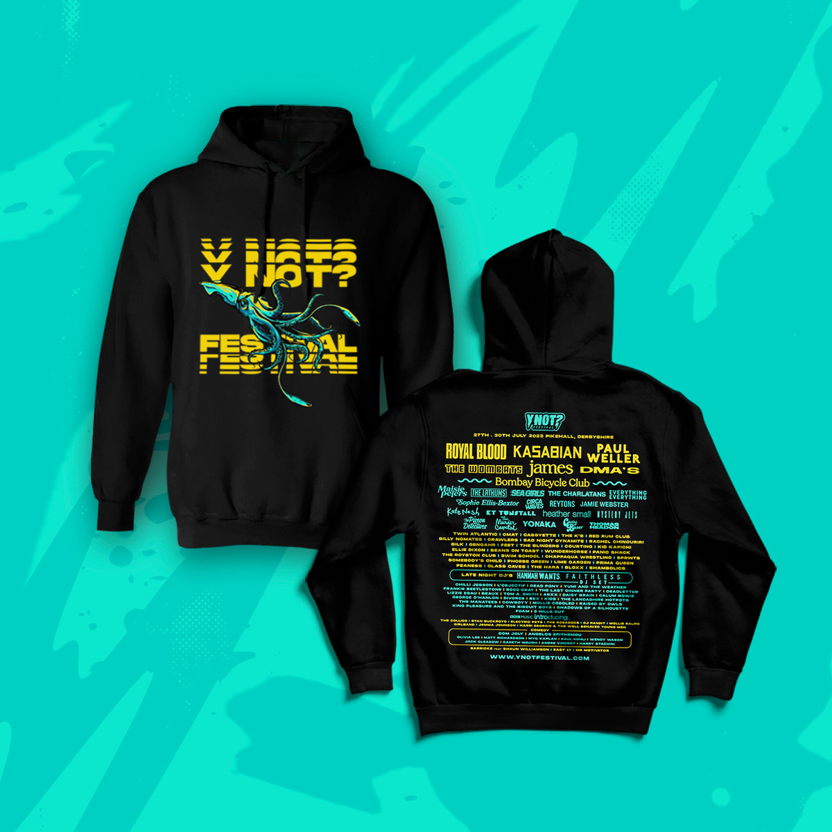 Y Not 2023 merch is here 🤤 👀 Pre-order your Tees, Long Sleeve Tees, Hoodies, Sweaters + Hats, and pick them up at the festival! 👕 ❗Please note: you will need to show your confirmation email to collect your order. Head to the festival merch tent between Thu 27th July – Sun 30th July❗ 👉 ynotfestival.bigcartel.com